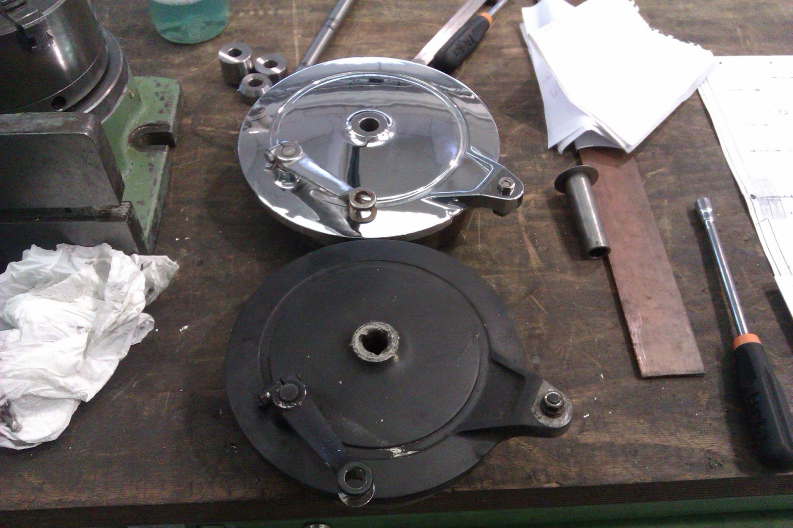 The hub was the problem, too big and a bit ugly to fit the forks, so I decided to work it a little removing the unnecessary bits and shaving the rest.